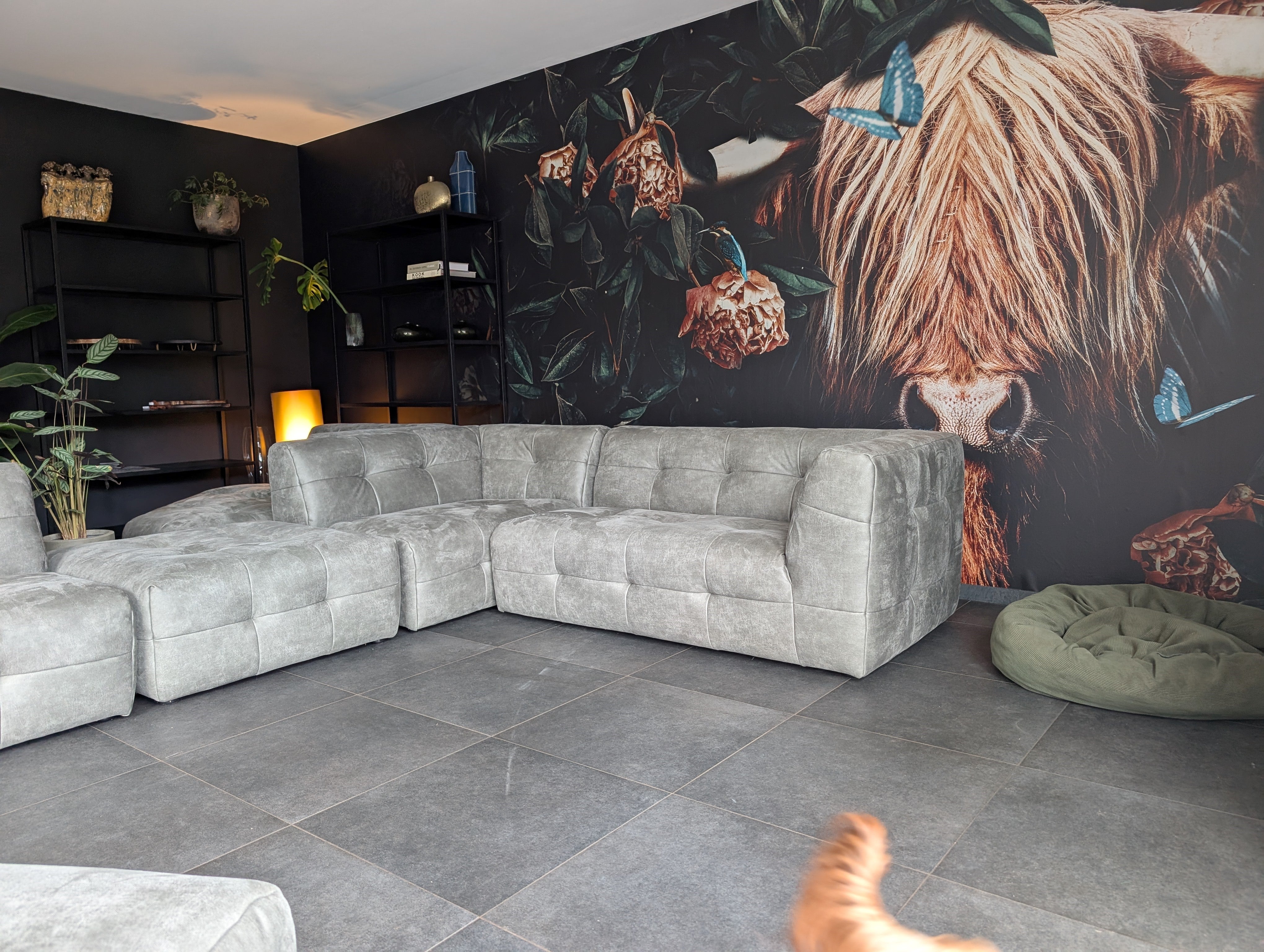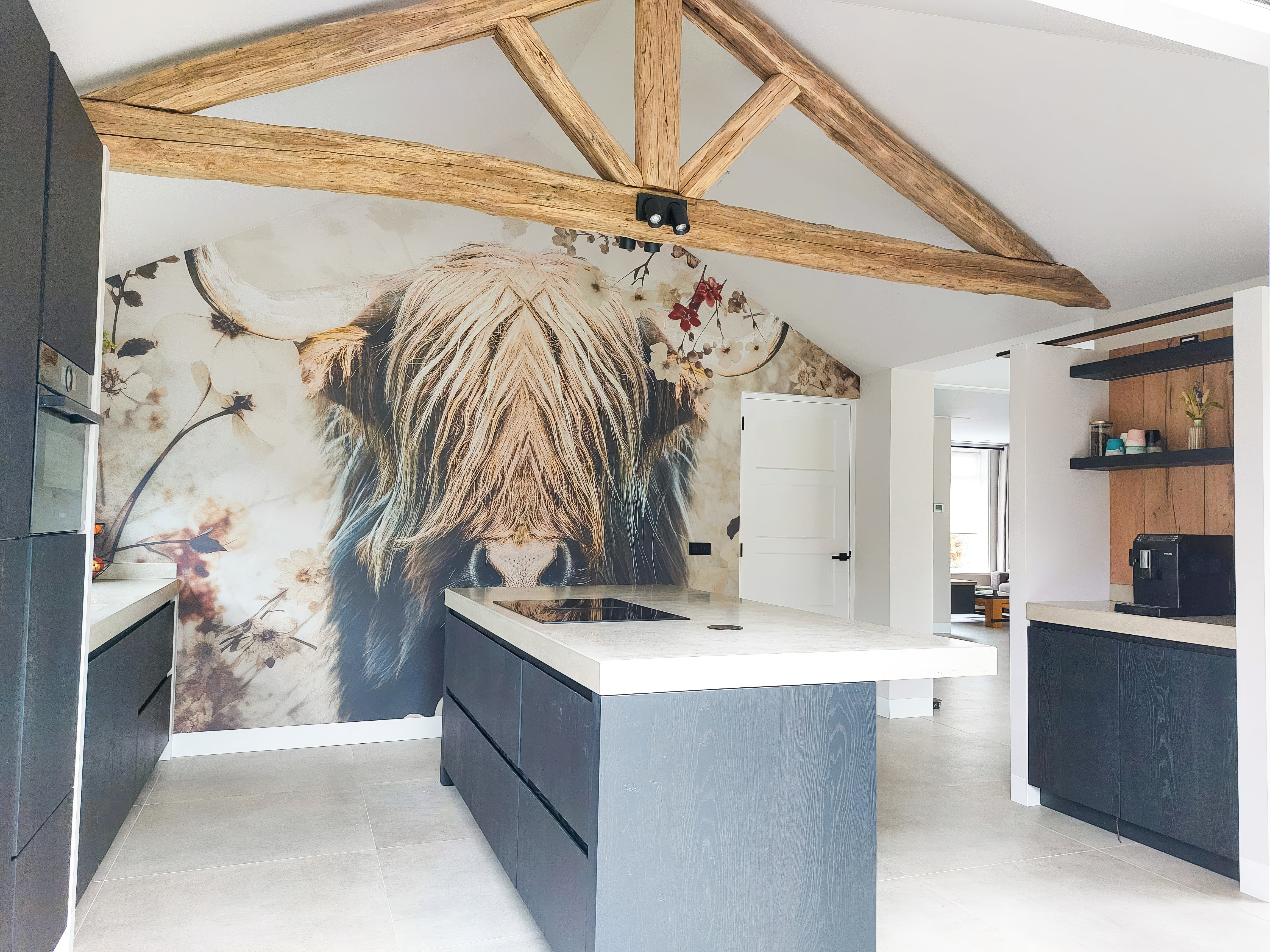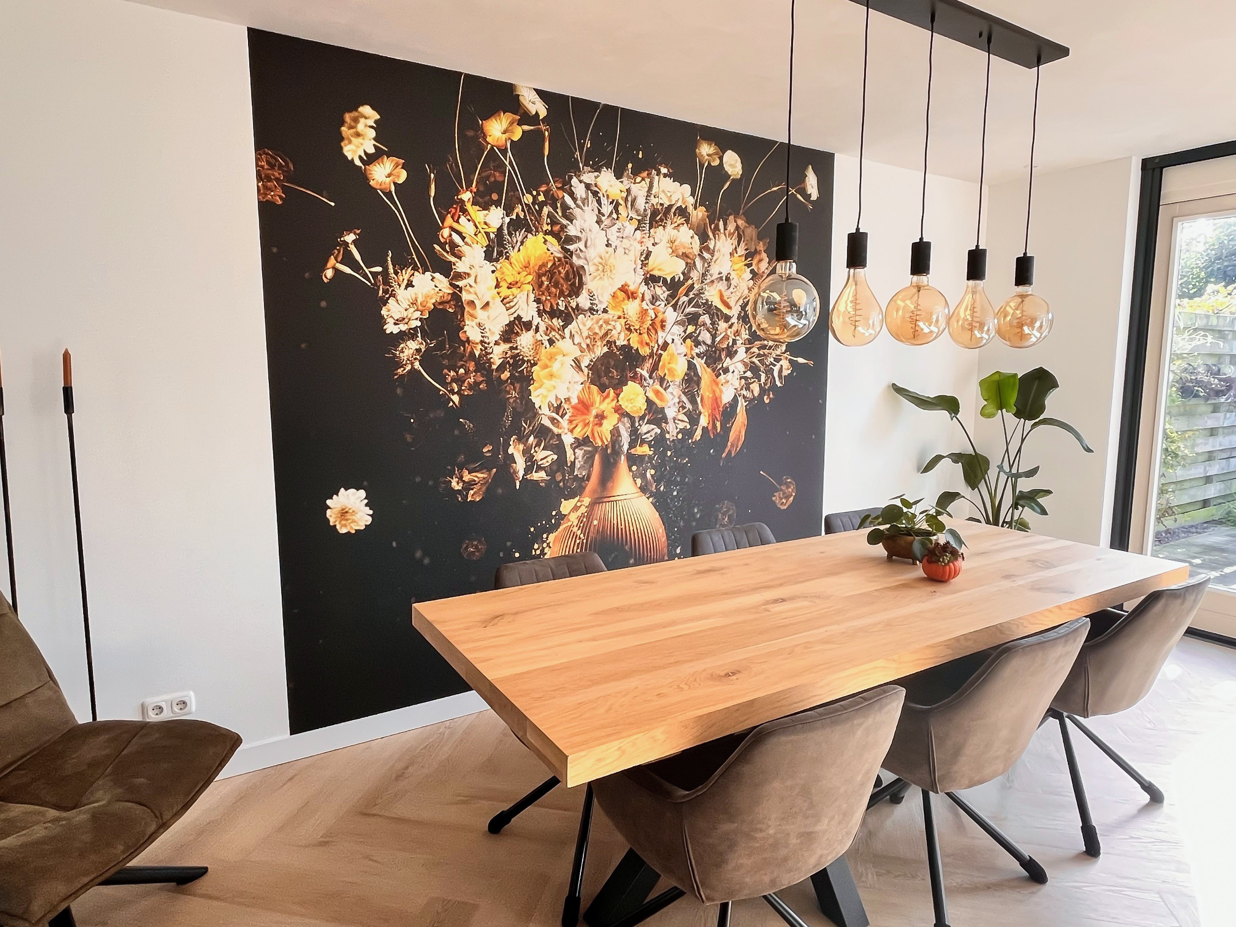 alu-dibond maar ook wandvullend behang.