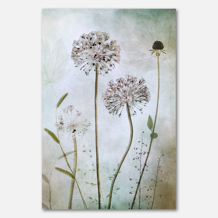 Diese Wanddekoration bringt die anmutige Schönheit von Blumen und Blättern in einer kreativen, fast malerischen Stilrichtung ganz nah zu Ihnen. Die Nahaufnahme und Doppelbelichtung verleihen Ihrem Interieur eine einzigartige, botanische Note, die perfekt zu modernen, skandinavischen und minimalistischen Wohnzimmern passt. Fügen Sie Ihrem Raum mit diesem Gemälde einen Hauch natürlicher Ruhe hinzu.