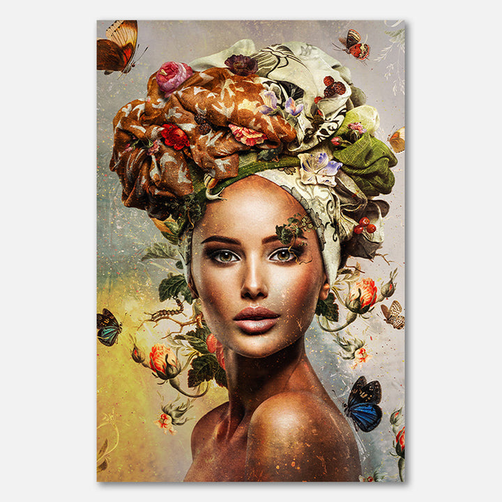 Dieses Gemälde erweckt eine elegante Frau zum Leben, umgeben von einer Explosion bunter Blumen. Ideal als Wanddekoration für alle, die einem modernen oder bohemischen Interieur einen Hauch von Romantik und Kreativität verleihen möchten. Diese einzigartige Kunst passt perfekt in jeden Raum, der Lebendigkeit und Stil verdient.