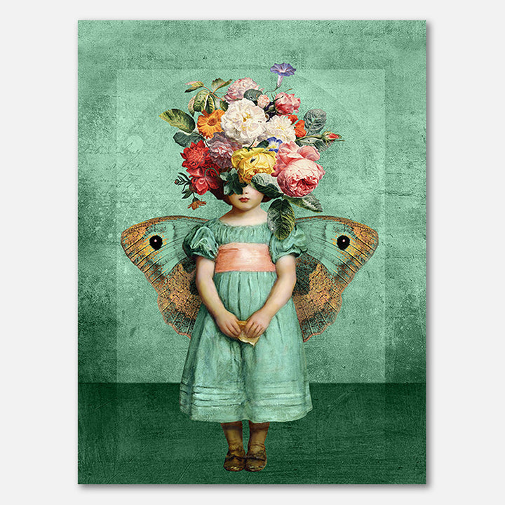Schönes und verträumtes Porträt eines Mädchens, eines menschlichen Kindes mit Elfenblut. Erinnerungen an die Vergangenheit, als wir wussten, dass Magie wirklich existiert. Dies ist meine Bearbeitung meines Bestseller "Whispers aus der Vergangenheit" aus dem Jahr 2021, in dem ich die Farben angepasst habe, um ihm ein sommerlicheres, federartiges Erscheinungsbild zu verleihen.