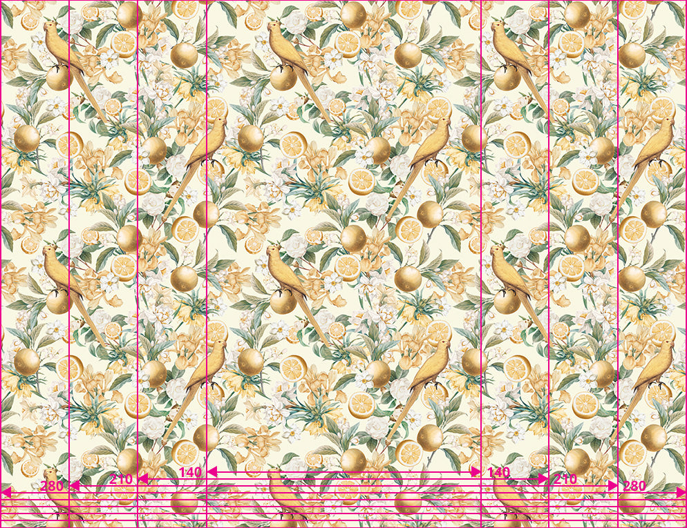 Het naadloze behang komt op één grote rol, dus geen losse banen zoals bij normaal behang. Het behang is gemaakt van het milieuvriendelijke SanoTex. Door de dekkende grijze achterkant van SanoTex komen de kleuren van de print extra fraai tot z’n recht en zijn de witte gedeeltes op het doek ook echt wit. Het materiaal scheurt en kreukt niet, is eenvoudig schoon te maken en krasvast. Het naadloos behang is tevens volledig waterafstotend