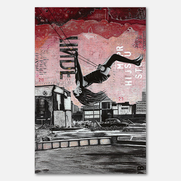 Mein Ödland ist eines der vielen "Swing" -Auskunst, die ich gemacht habe. Es zeigt die Freiheit, die Sie als Kind fühlen. Gleichzeitig zeigt es, wie gesperrt die Kinder heute leben. Im Inneren hinter ihren Laptops und Smartphones.