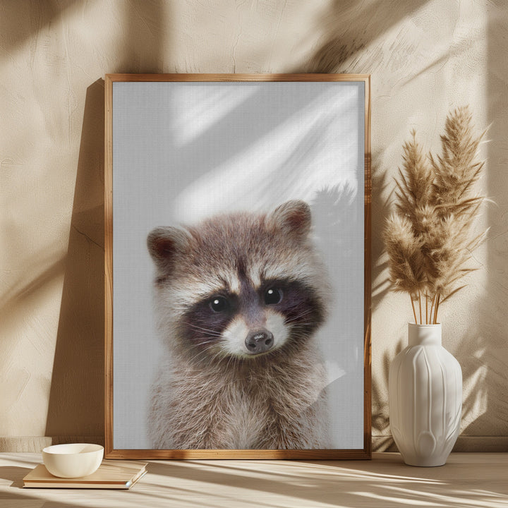 Diese fröhliche Wanddekoration zaubert ein Lächeln ins Haus dank des verspielten Waschbären, der neugierig um die Ecke schaut. Das Gemälde mit seinem niedlichen Tiercharakter passt perfekt in ein Kinderzimmer, eine Spielecke oder einen gemütlich eingerichteten Wohnraum. Die Natur- und das liebevolle Tiermotiv fügen sich nahtlos in einen frischen, modernen Stil oder ein skandinavisches Interieur ein. So fügst du deiner Wand ganz einfach eine Prise Fröhlichkeit und Persönlichkeit hinzu.