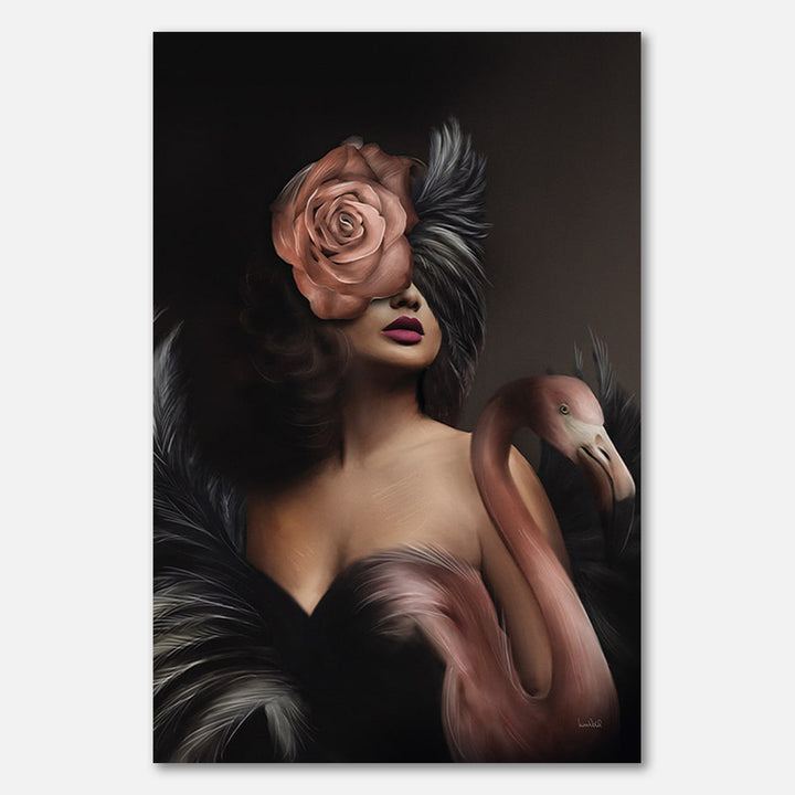 Mit schönen diskreten rosa Tönen kombiniert mit dem rosa Flamingo und den goldenen Details hat das Bild "Silja" einen femininen, aber coolen Look. Die Rose, die das Gesicht der schönen Dame bedeckt, gibt ihr noch mehr Rätsel. Siehe auch ihre perfekte Übereinstimmung, Svanhild! Wir empfehlen ein großes Format, um alle schönen Details zu erhalten!