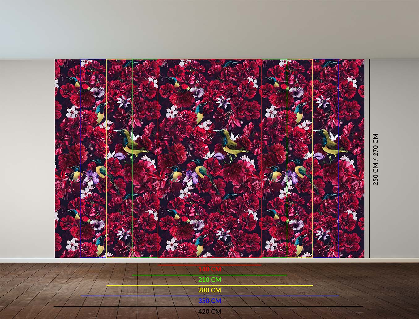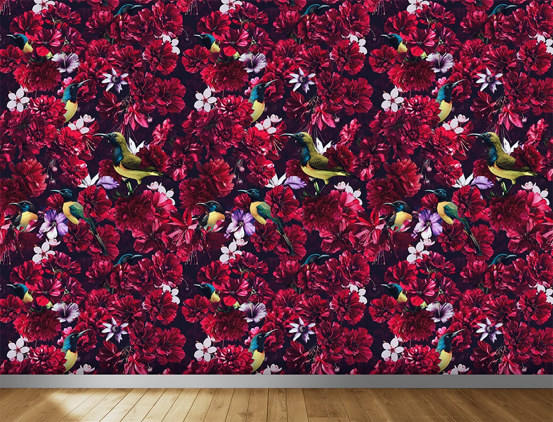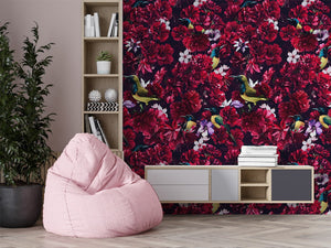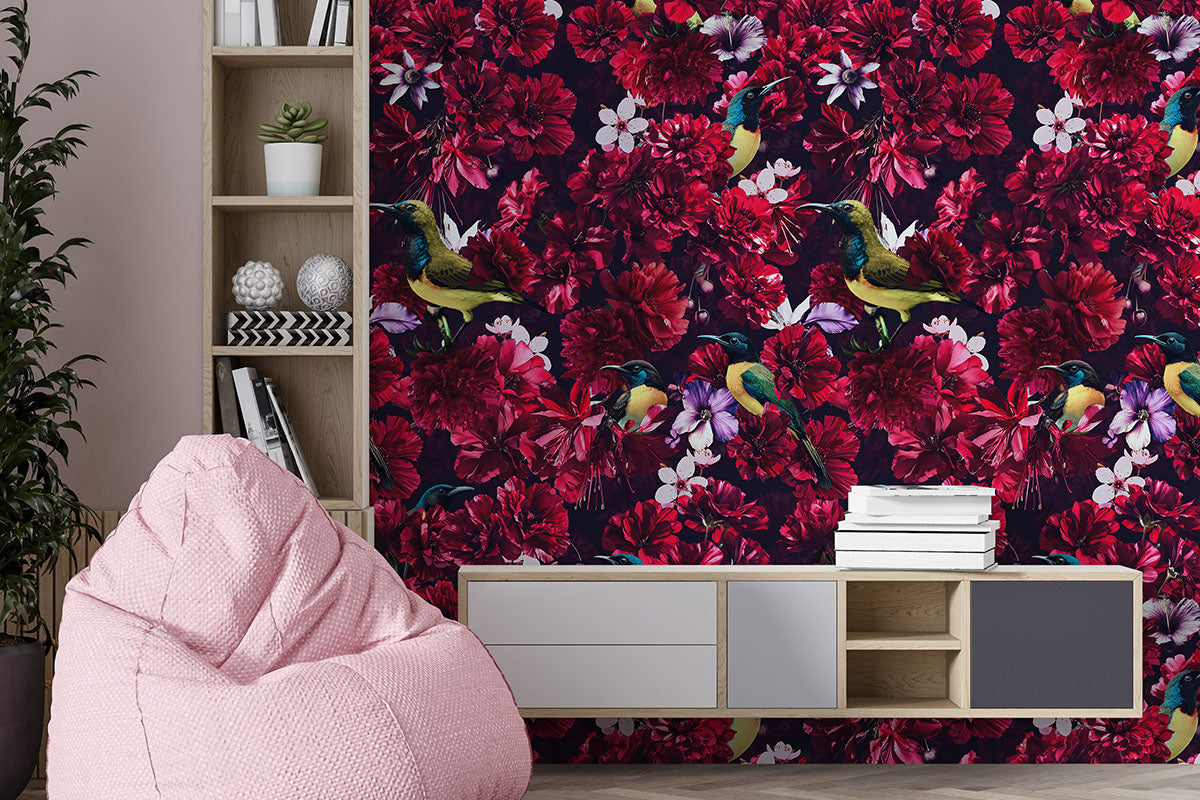 Mit dieser lebendigen Tapete holen Sie sich sofort ein tropisches Flair ins Haus, dank der bunten Blumen und Nektarvögel, die verspielt über die Wand flattern. Perfekt für ein fröhliches Wohnzimmer, ein trendiges Kinderzimmer oder ein eklektisches Interieur. Wählen Sie aus Vliestapete, Vinyltapete, nahtloser Tapete oder akustischer Tapete; allesamt Premium-Materialien!