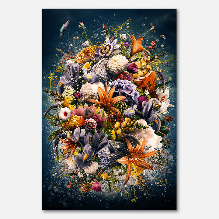 Long ago the poets came up with a flower that never faded: the Amarant. The name is rooted in the Greek words Amarantos, which means 'immortal' or 'non-supplies', and Anthos, which means 'flower'. The word Amaranthine emerged as an adjective of the imaginary flower and everything that the immortal quality has. At a time like this it is interesting to see how nature can remain neutral and is not aware of our challenges as a society. But nature never stands still. Even during a crisis, it seems that nature is able to feed itself and to make it healthy again. We as a society can look at nature and learn from its resilience and interdependence. Together we are able to deal with hardships and support each other. Only then can we bloom like a non-supplying flower. All elements have been photographed and merged digitally by the artist.