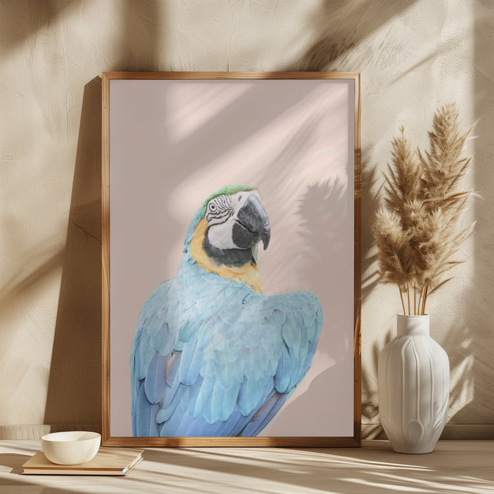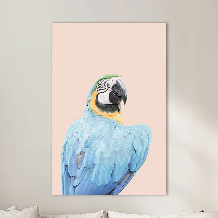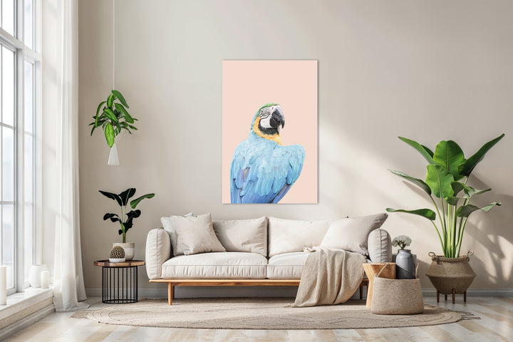 This wall decoration brings a cheerful blue macaw to life and lets you enjoy the playful expression and bright colors every day. Perfect for children's rooms or modern interiors with a light, neutral base, this painting adds a sense of happiness and playful energy to any space.
