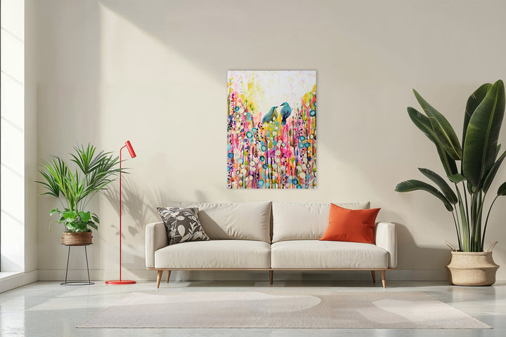 The canvas is stretched on a sturdy wooden frame with stretcher slats. The wooden frame is 18 millimeters thick and comes standard with a free hanging set. The sturdy wooden frame is so light that you only need one or two screws or nails to hang it on the wall.