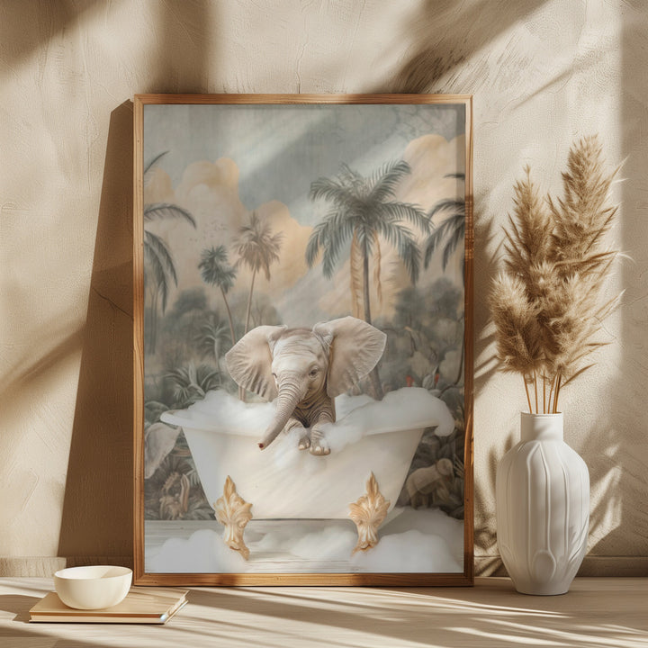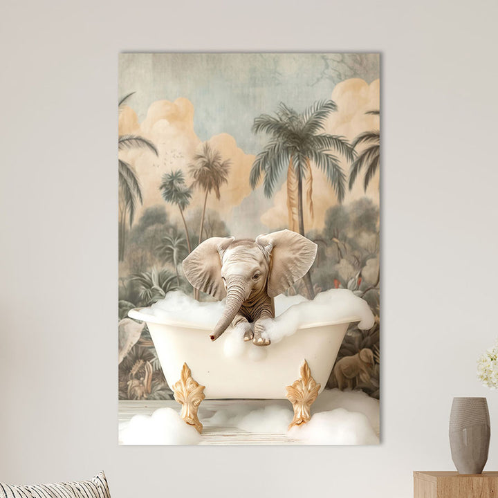 Dit vrolijke schilderij toont een speelse olifant die bubbels blaast en brengt direct een glimlach in huis. Door zijn luchtige uitstraling past deze wanddecoratie perfect in kinderkamers, speelhoeken of moderne interieurs. Het kunstwerk combineert fantasie met een frisse vibe en wordt gegarandeerd een blikvanger aan de muur.