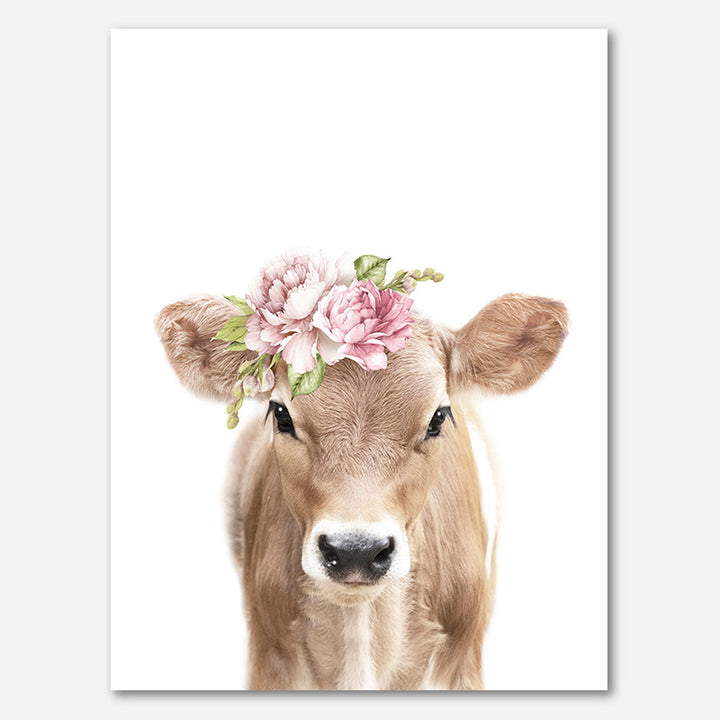 This wall decoration features a cute calf surrounded by a fresh, light background, perfect for a cheerful and rustic atmosphere. The innocent animal brings charm and softness to a child's room or a modern, country-style interior. Ideal as an ambiance enhancer for those who love animals and a bright look in their home.