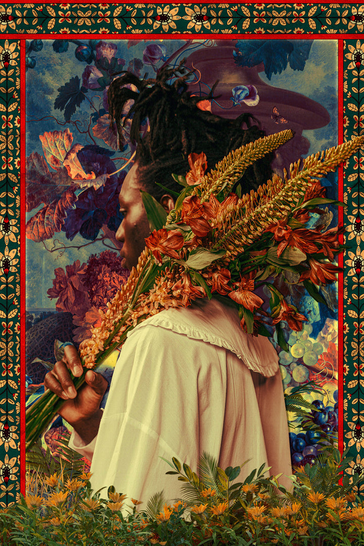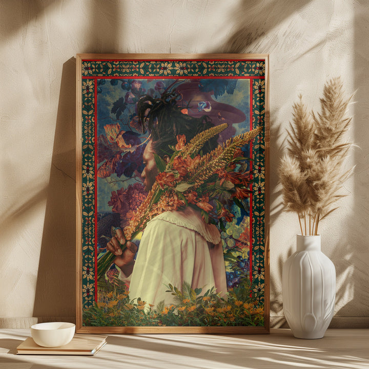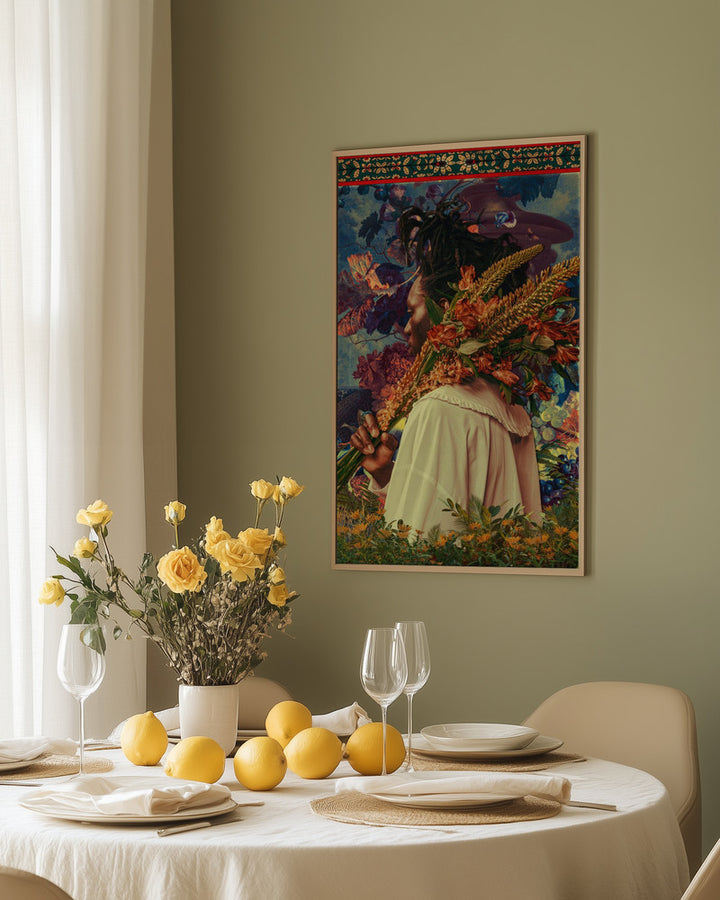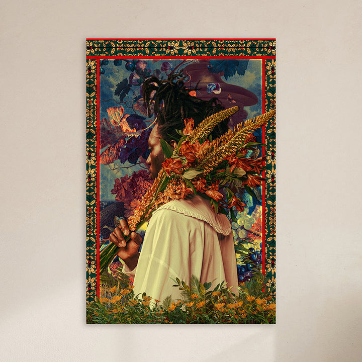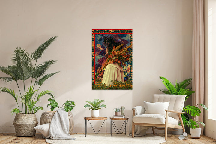 This painting combines the energy of Afrofuturism and botanical art in a colorful, surreal atmosphere. Perfect for an expressive living style or a modern interior where striking colors and creative digital art come to life, this wall decoration will inspire you daily with vibrant patterns and flowers.