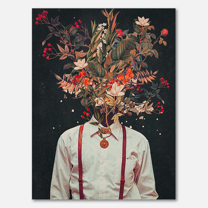 This unique artwork brings together a dreamy collage full of colorful flowers, surreal fashion, and vintage retro vibes. Perfect for lovers of botanical prints and those with a fondness for nostalgia, fashion, or distinctive portraits. Fits effortlessly into modern, botanical, and eclectic interiors.