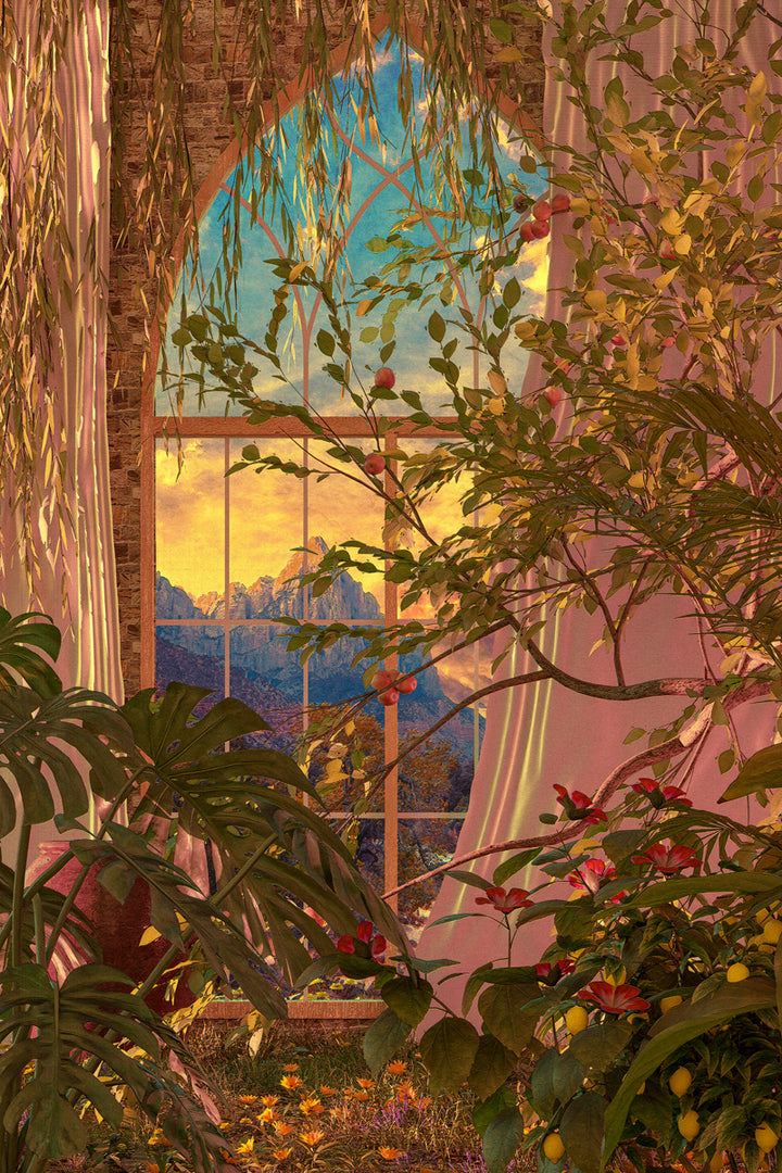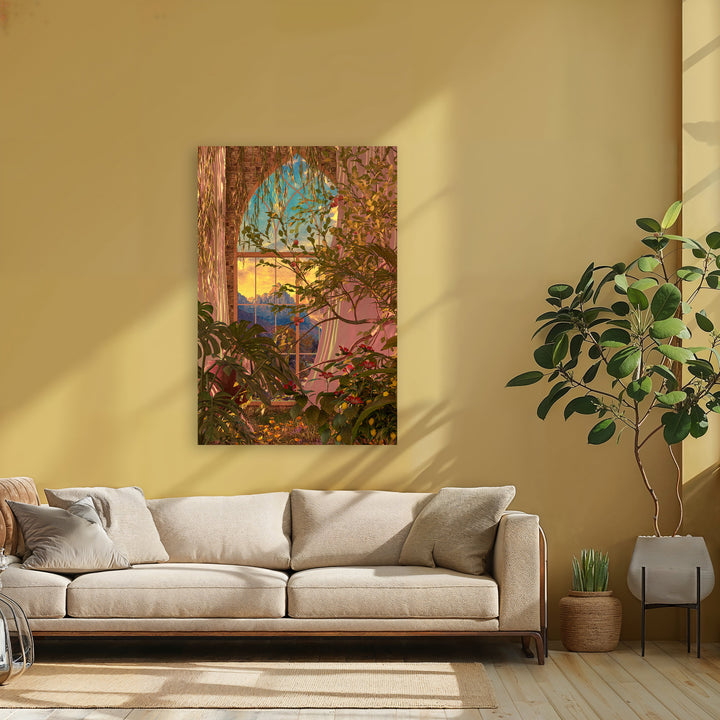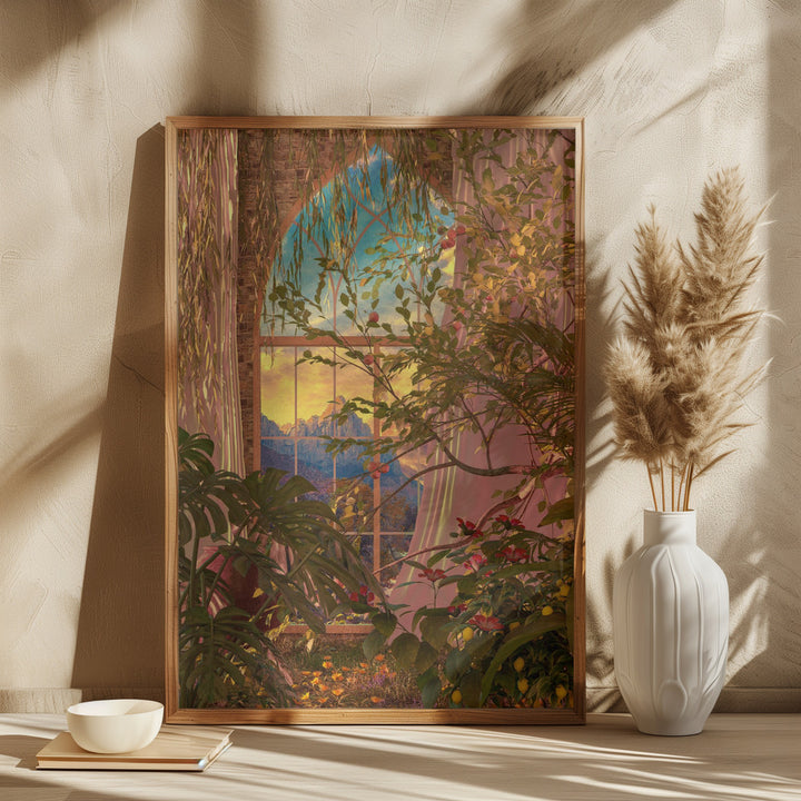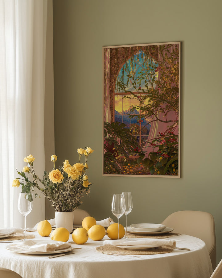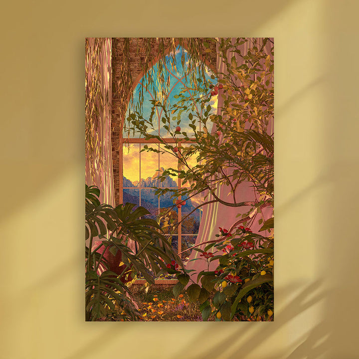 This creative painting brings the beauty of botanical plants and flowers to life, perfect for nature and graphic art lovers. The collage of flora and windows gives your interior a fresh, inspiring touch and fits beautifully with both modern and rustic living styles. Place this wall decoration in your living room, bedroom, or office for a unique, lively atmosphere.
