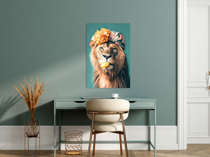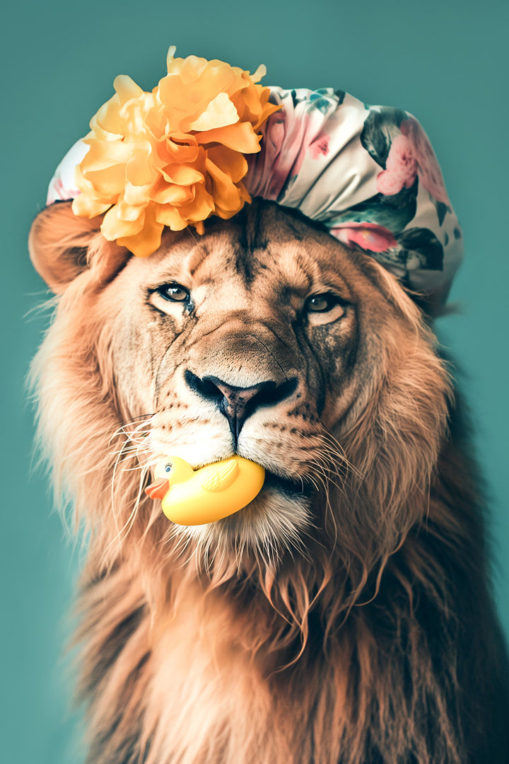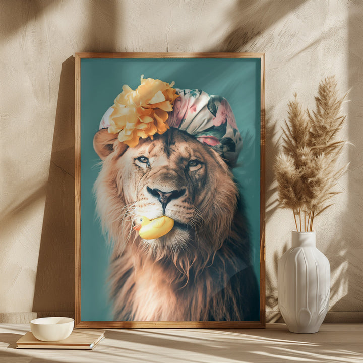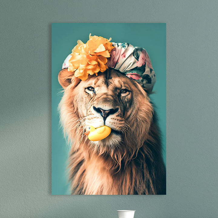 A bold lion adorns this wall decoration and immediately gives your bathroom its own character. The funny, relaxed atmosphere of the painting fits perfectly in any bathroom, especially if you are looking for a touch of humor. This piece brings fresh colors and a playful twist to your interior.
