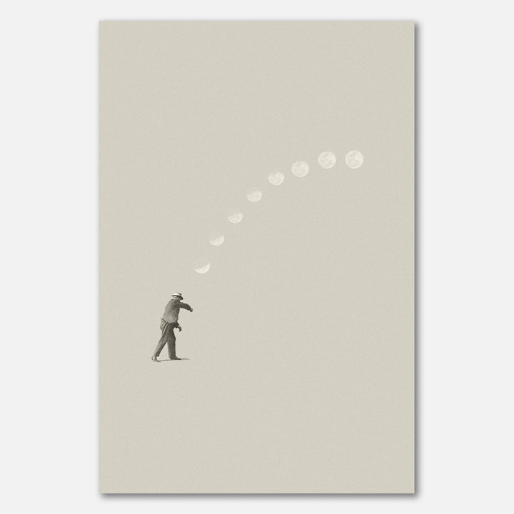 This painting brings a mysterious atmosphere with a minimalist figure under the moonlight, perfect for lovers of simplicity and abstraction. The soft beige tones ensure that this wall decoration effortlessly fits into a modern, minimalist, or mid-century interior. Give your space an artistic and dreamy twist!