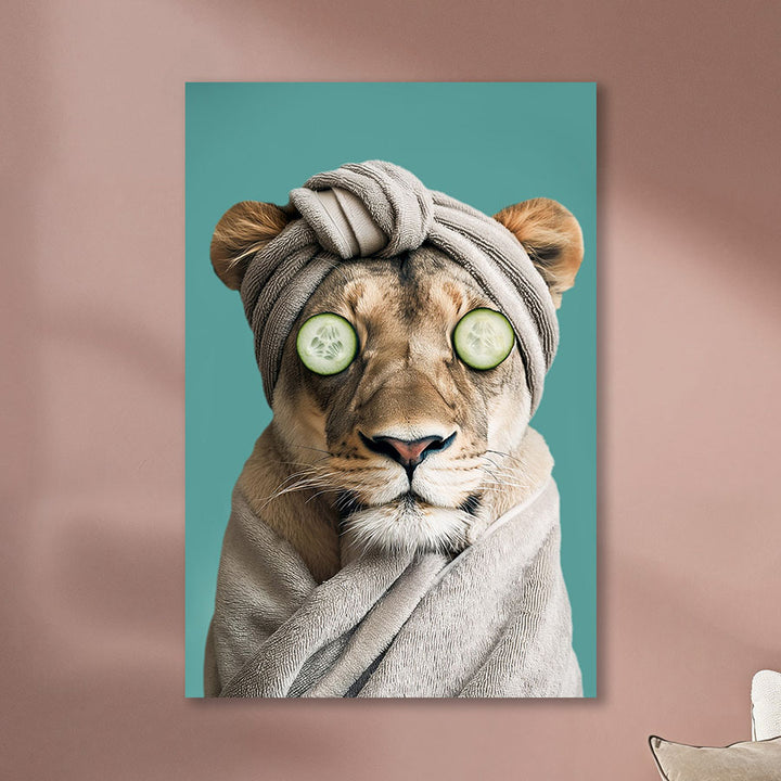 This wall decoration brings the powerful appearance of a lioness to life, perfect for animal art lovers. It is a surprisingly funny painting that enriches any bathroom interior and gives a luxurious, playful look. Thanks to the unique combination of animal art and contemporary colors, this artwork fits perfectly within modern, stylish interiors.
