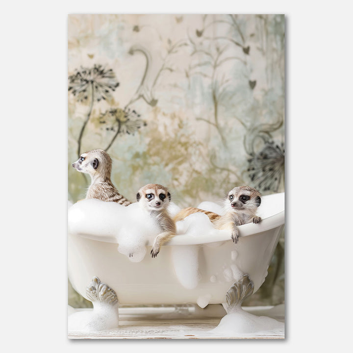 This cheerful wall decoration shows a curious meerkat bathing in a sea of foam, perfect for a playful and relaxed atmosphere. The painting fits nicely in a modern bathroom or a neutral interior and at the same time brings a touch of safari and wildlife into the home. With its fresh green tones and soft appearance, this painting is ideal as an eye-catcher in any room where you could use a little extra cheerfulness.