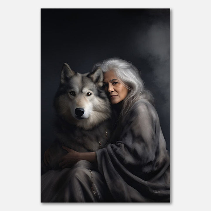 This design records the beauty of the deep band that can arise between two natural being. The background is a dark palette, seasoned with wings of blue and gray, which emphasizes the mysterious and suggestive moment!