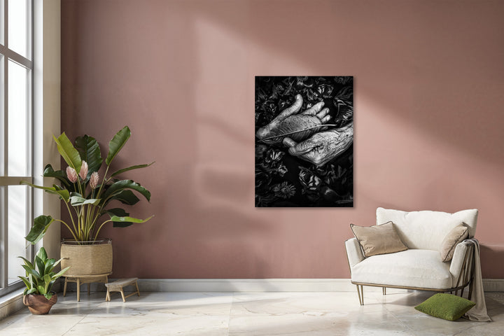 The canvas is stretched on a sturdy wooden frame with stretcher slats. The wooden frame is 18 millimeters thick and comes standard with a free hanging set. The sturdy wooden frame is so light that you only need one or two screws or nails to hang it on the wall.