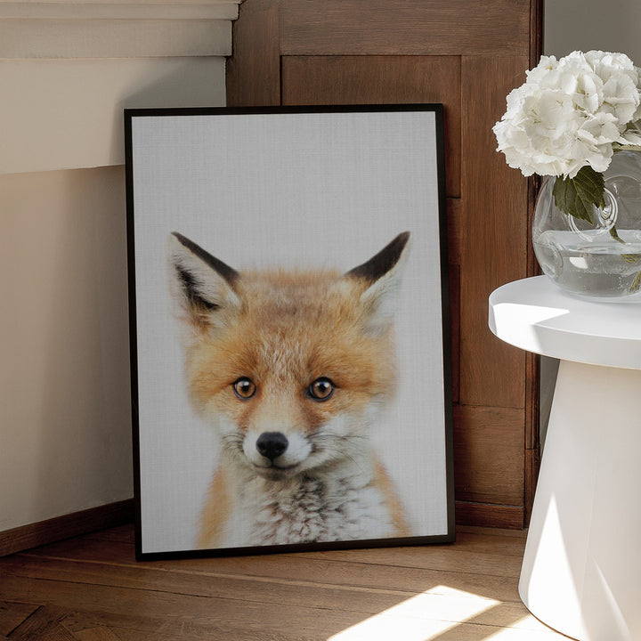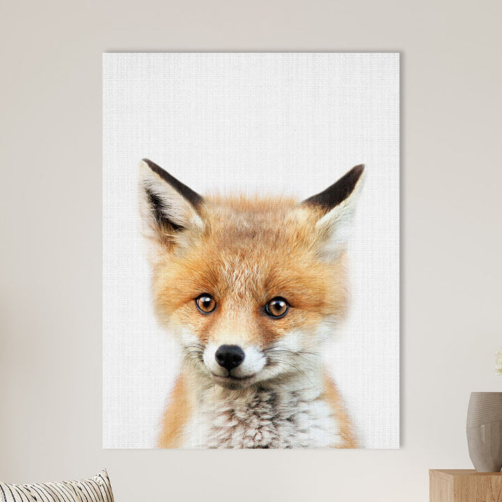 Bring a smile to your room with this cute wall decoration of a curious baby fox. Perfect for children's rooms or natural interiors where a love of animals is central. The soft appearance of the painting fits seamlessly with a modern, Scandinavian, or playful style and gives any space a warm, loving atmosphere.