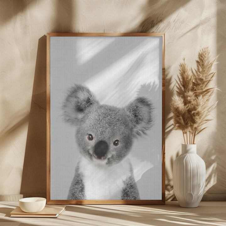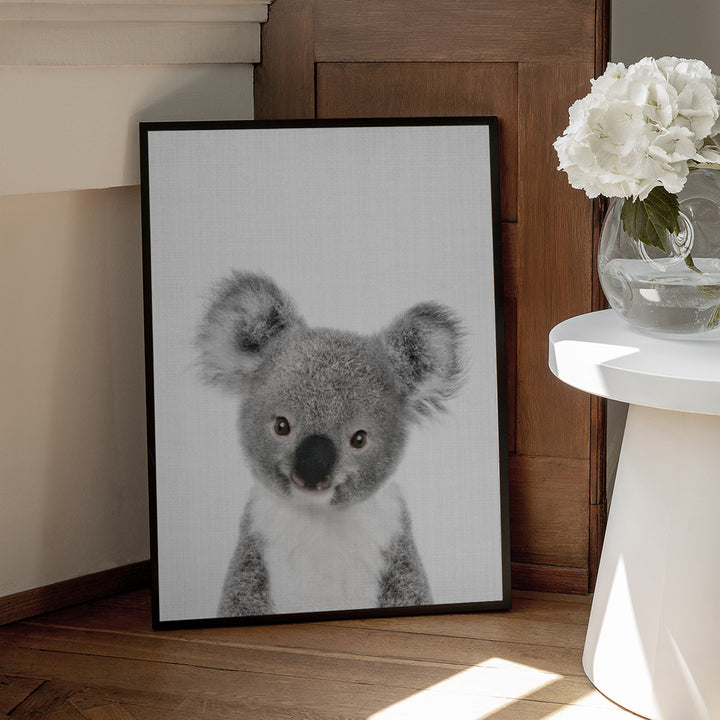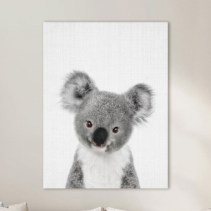 This cute wall decoration brings a playful baby koala to life against a bright, white background. The cheerful painting fits perfectly in a child's room but also adds a fresh look to modern and Scandinavian interiors. Let yourself be enchanted by the happy animal, always ready for a smile.