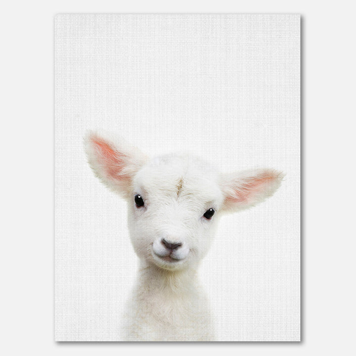 This charming painting of a curious lamb instantly brings a touch of farm life into your home. Perfect for a country or Scandinavian interior style, and irresistibly cheerful in the children's room. The soft appearance of this wall decoration pairs beautifully with natural tones and warm materials.