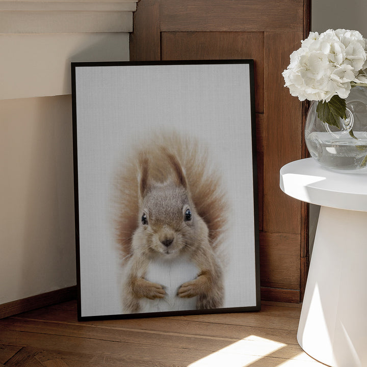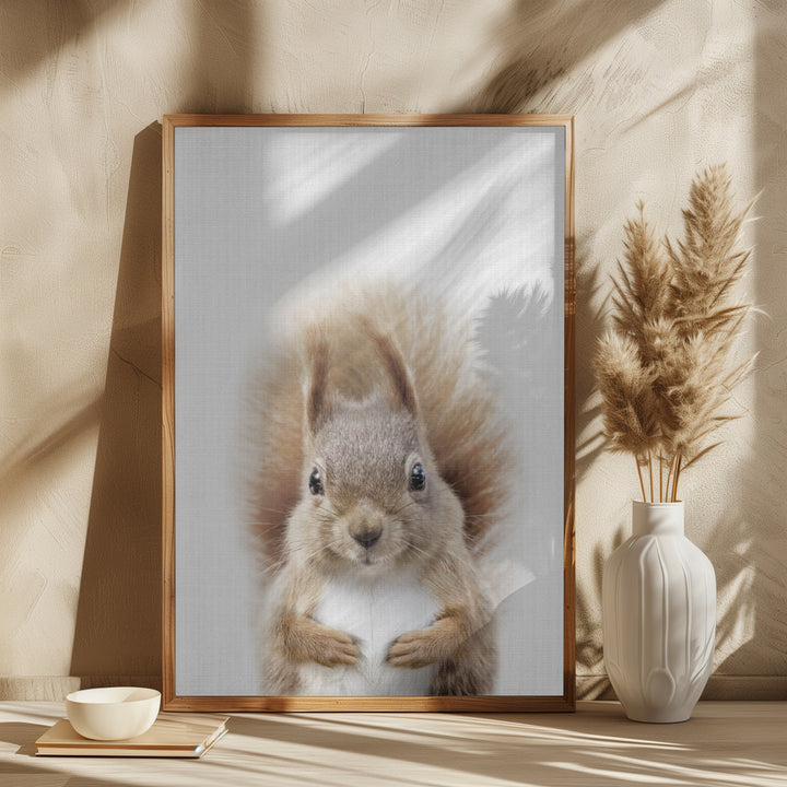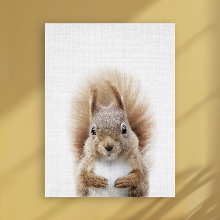 This playful wall decoration instantly brings a smile to your home with a curious squirrel peeking out from behind a twig. The cheerful animal scene fits perfectly in a Scandinavian interior or children's room, and combines beautifully with natural tones and wood. Give your wall character with this animal painting!
