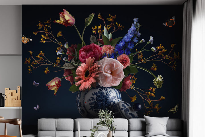 "Royal Beauty Bloemstilleven" is one of the new top flower still lifes of the moment. A scale of flowers in a Delfs blue colored vase. A must have for every living interorn.