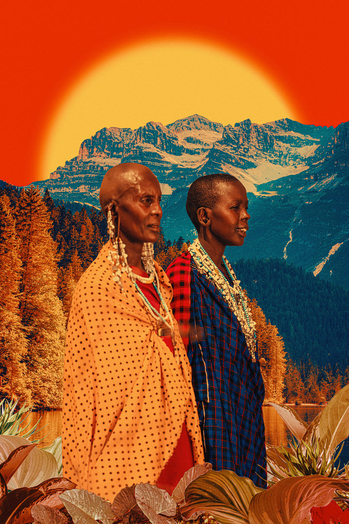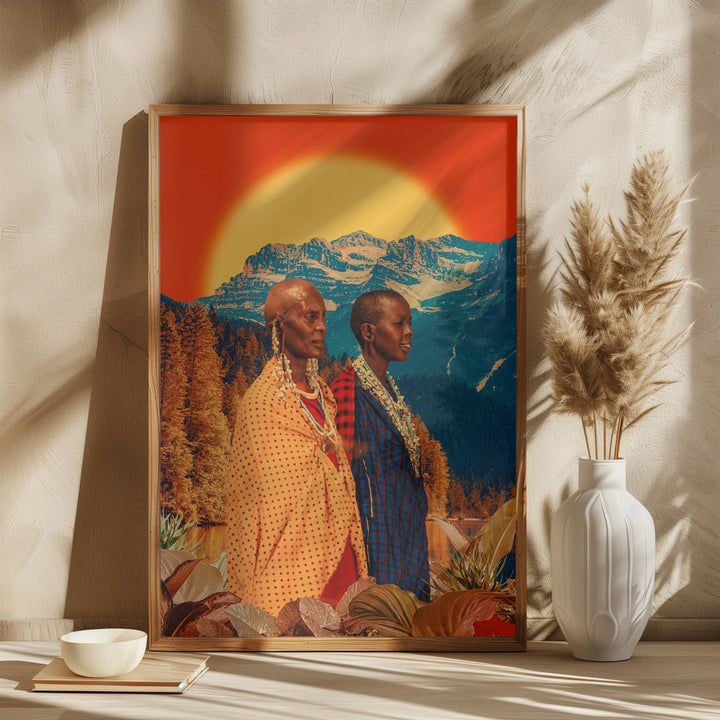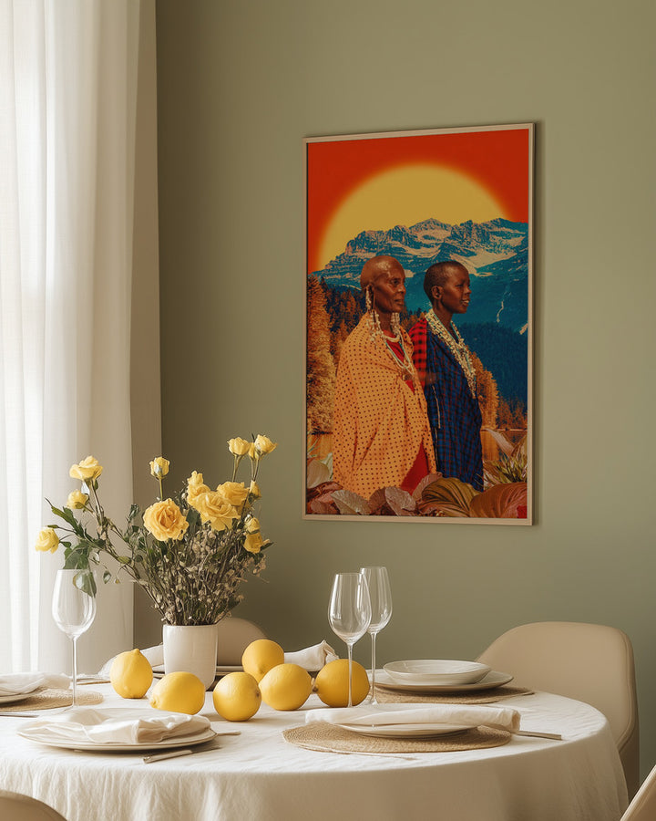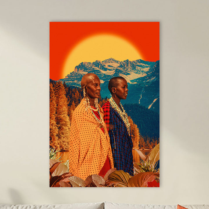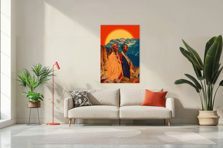 This colorful wall decoration with African influences brings warmth and creativity to your interior. The duo, dressed in traditional clothing with vibrant shades of orange and red, radiates connection and fits perfectly with modern, bohemian, or eclectic living styles. Ideal for adding atmosphere to any space!