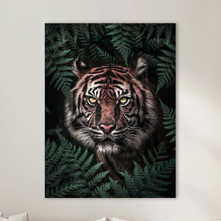 Met deze wanddecoratie haal je de kracht en elegantie van een tijger direct in huis. Het kunstwerk straalt avontuur en mysterie uit, waardoor het perfect past binnen moderne, industriële of zelfs bohemian interieurs. Deze schilderij is een echte blikvanger die sfeer en karakter toevoegt aan elke ruimte.