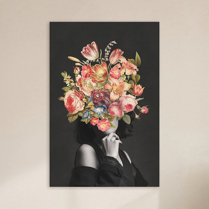 This wall decoration brings a romantic atmosphere to your home with its botanical theme, featuring flowers and love against a dark background. Perfect for classic, vintage, or modern-eclectic interiors thanks to its fresh and dreamy appearance, ideal as an ambiance enhancer in the living room or bedroom.
