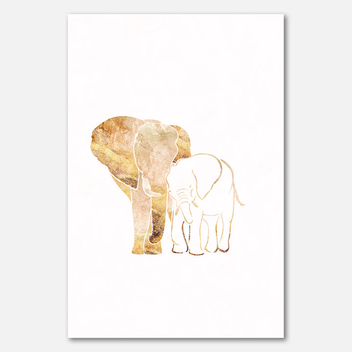 This wall decoration exudes luxury and simplicity, featuring elegant silhouettes of elephants in white and gold. Perfect for a modern or Scandinavian interior seeking warm accents and a serene atmosphere. This painting gives your room a playful, bright look and fits beautifully in nurseries or a stylish living room.