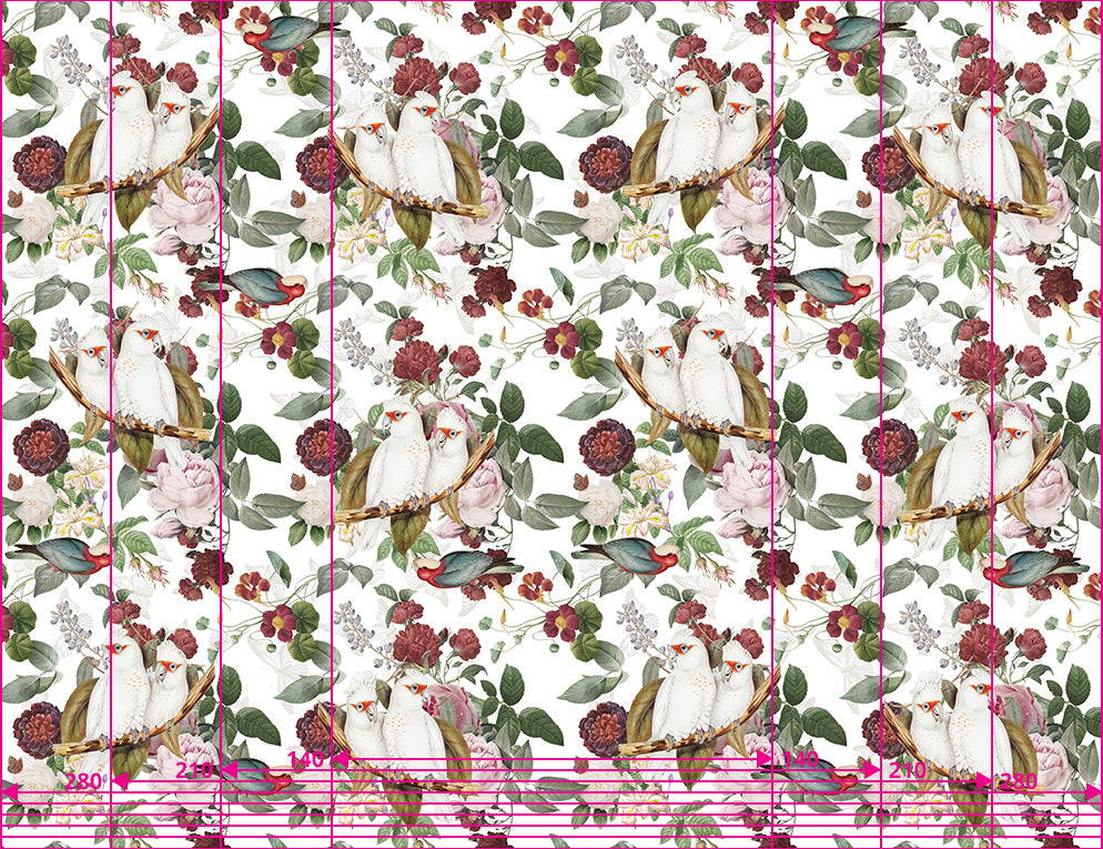 Het naadloze behang komt op één grote rol, dus geen losse banen zoals bij normaal behang. Het behang is gemaakt van het milieuvriendelijke SanoTex. Door de dekkende grijze achterkant van SanoTex komen de kleuren van de print extra fraai tot z’n recht en zijn de witte gedeeltes op het doek ook echt wit. Het materiaal scheurt en kreukt niet, is eenvoudig schoon te maken en krasvast. Het naadloos behang is tevens volledig waterafstotend