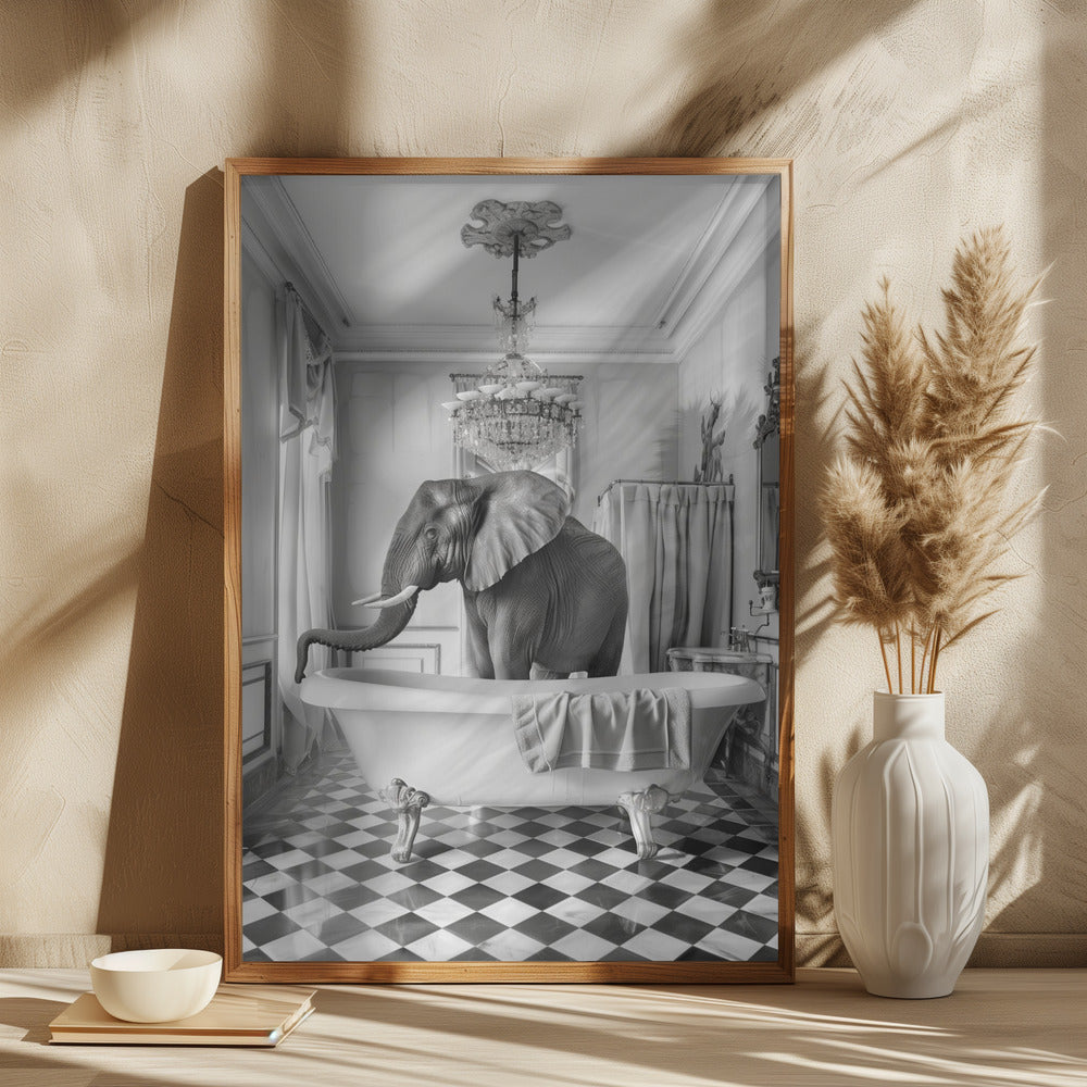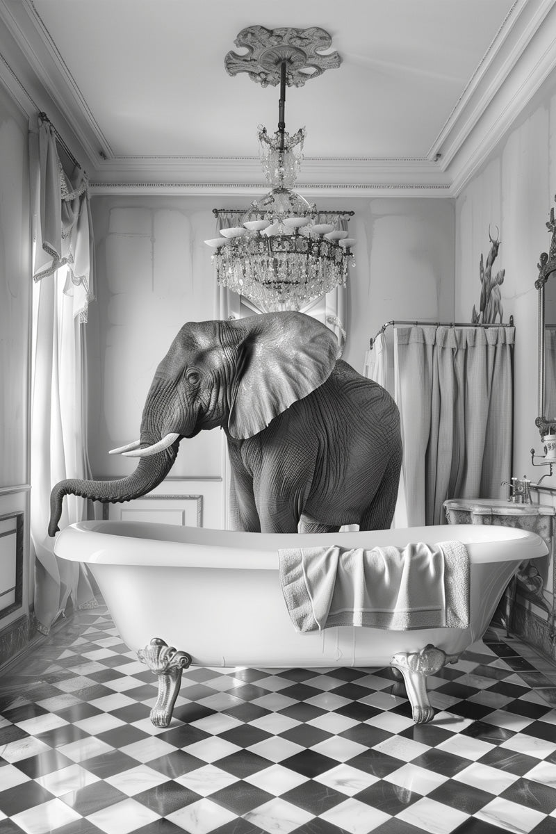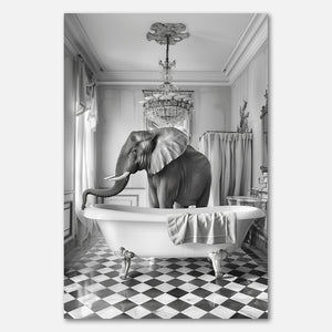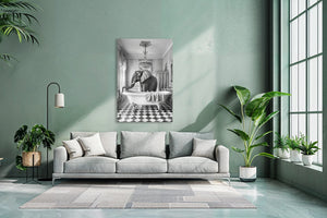 Deze wanddecoratie brengt een speelse en intieme sfeer in huis, perfect voor moderne of Scandinavische interieurs. Met het alledaagse moment in de badkamer vangt dit schilderij een stil gevoel van rust en privacy, waardoor het zowel in de badkamer als in een gezellige hal helemaal tot zijn recht komt.