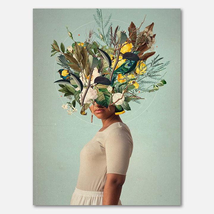 Deze wanddecoratie brengt een vleugje retro en surrealistische charme in je interieur. Abstracte vormen, kleurrijke bloemen en subtiele modetinten vormen samen een levendig portret zonder gezicht, perfect voor liefhebbers van botanisch design en vintage stijl. Ideaal als poster voor een moderne woonkamer, slaapkamer of creatieve werkplek.