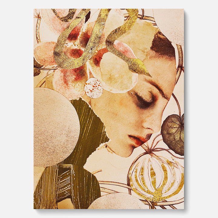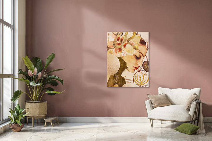 Laat je inspireren door deze schilderij, waarop een vrouw te zien is in een geheime tuin. Deze unieke wanddecoratie, gemaakt met mixed media, zorgt voor een dromerige sfeer en past perfect in een modern, bohemien of natuurlijk interieur. Ideaal als sfeermaker en stijlaccent aan jouw muur.