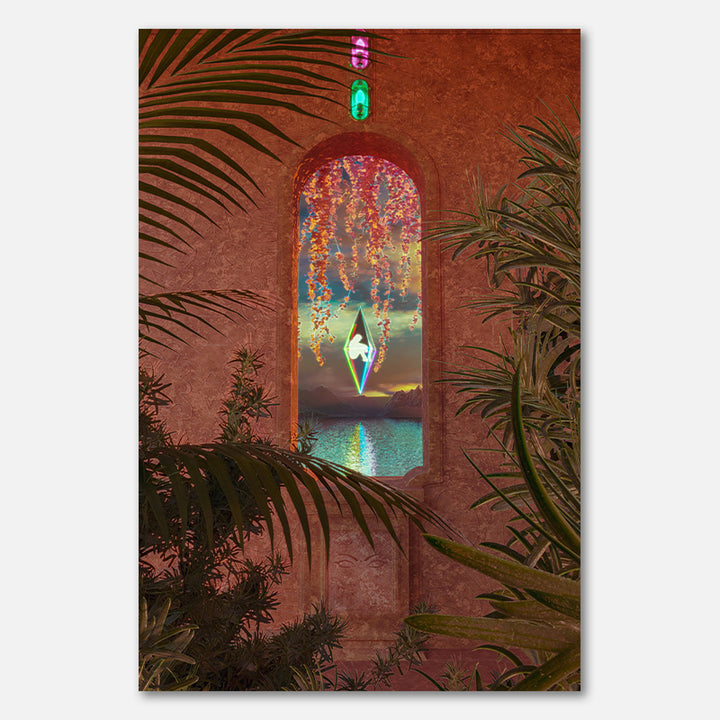 Deze fantasievolle wanddecoratie combineert een kleurrijke stad met sprookjesachtige planten en architectuur, waardoor het perfect past bij creatieve, urban en botanische interieurs. Het surrealistische karakter van het schilderij brengt verbeelding en sfeer aan de wand en maakt elke ruimte direct levendiger en unieker.