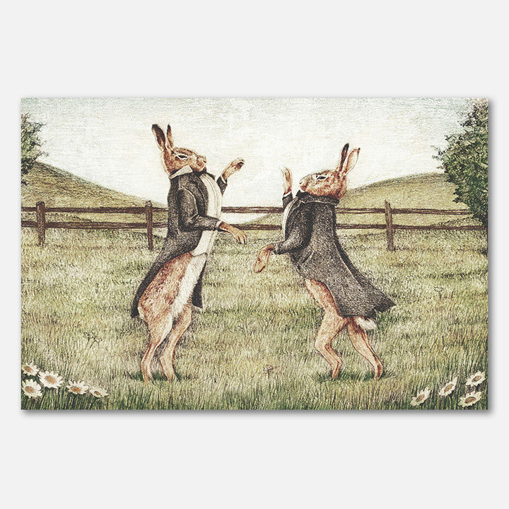 Dit schilderij brengt een vrolijke mix van charmante hazen in een speelse, vintage stijl tot leven met een knipoog naar folklore en een rustieke countryside vibe. De wanddecoratie past perfect bij interieurs die verlangen naar een vleugje natuur en een vleugje eigenzinnige, nostalgische gezelligheid. Met zijn antropomorfe dieren en leuke details is deze wanddecoratie ideaal voor wie op zoek is naar een unieke en sfeervolle toevoeging aan de woon- of kinderkamer.