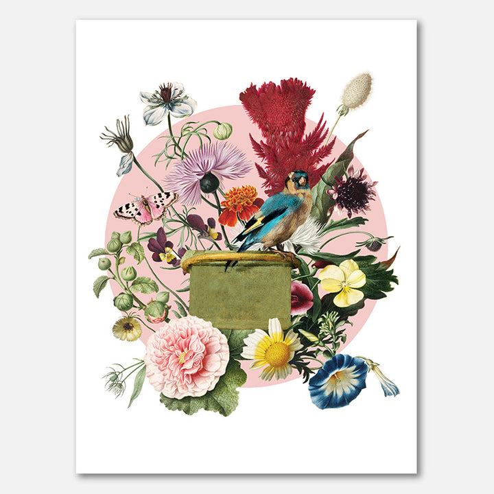 Dit portret van een putter (of distelvink) is in 2025 door mij digitaal aangepast en ik heb het aangevuld met fragmenten uit schilderijen van andere kunstschilders en op die manier heb ik de originele beeltenis omgetoverd in een schilderij met een zomerse twist en een vrolijke knipoog.