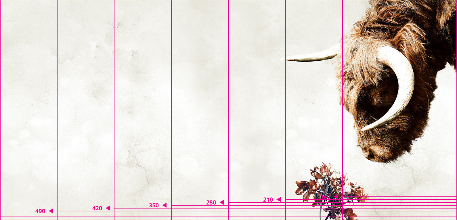 Geef je ruimte een warme, rustieke sfeer met dit behang waarop een Schotse hooglander rustig aan bloemen snuffelt. Deze wandbekleding brengt het landelijke buitenleven naar binnen en past perfect bij een bohemian, landelijke of Scandinavische interieurstijl. Verkrijgbaar als premium vliesbehang, vinylbehang, naadloos behang én akoestisch behang, waardoor je verzekert bent van kwaliteit en stijl.