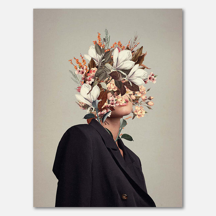 Duik in een dromerige sfeer waar herfstige bloemen en subtiele botanische details samenkomen tot een elegant kunstwerk. Deze digitale collage straalt rust en mindfulness uit, perfect voor een stijlvol, zen en vrouwelijk interieur met een vleugje surrealistische charme. Voeg direct warme elegantie toe aan je muurdecoratie.