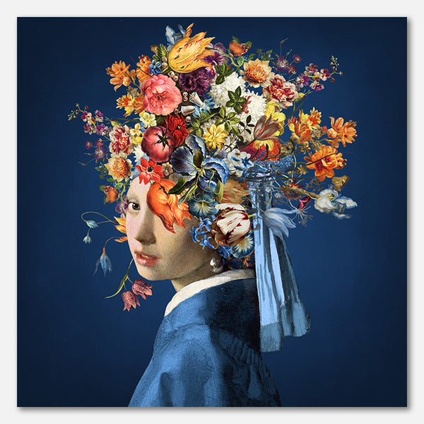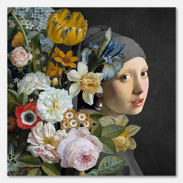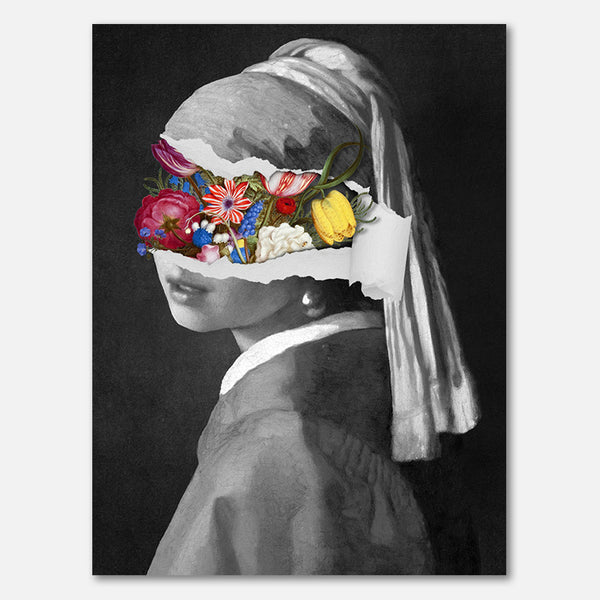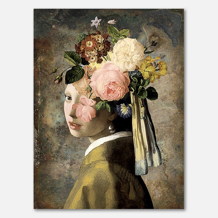 Het Meisje met de Parel, oorspronkelijk geschilderd door de Nederlandse kunstschilder (uit Delft) Johannes Vermeer, omstreeks 1665-1667. In deze versie is het meisje gecombineerd met bloemen uit een stilleven van een onbekende kunstschilder uit dezelfde periode. De kleuren zijn ingetogener gemaakt zodat het meisje past bij de metalen achtergrond. Een ruw en ongepolijst maar tegelijkertijd teder kunstwerk.
