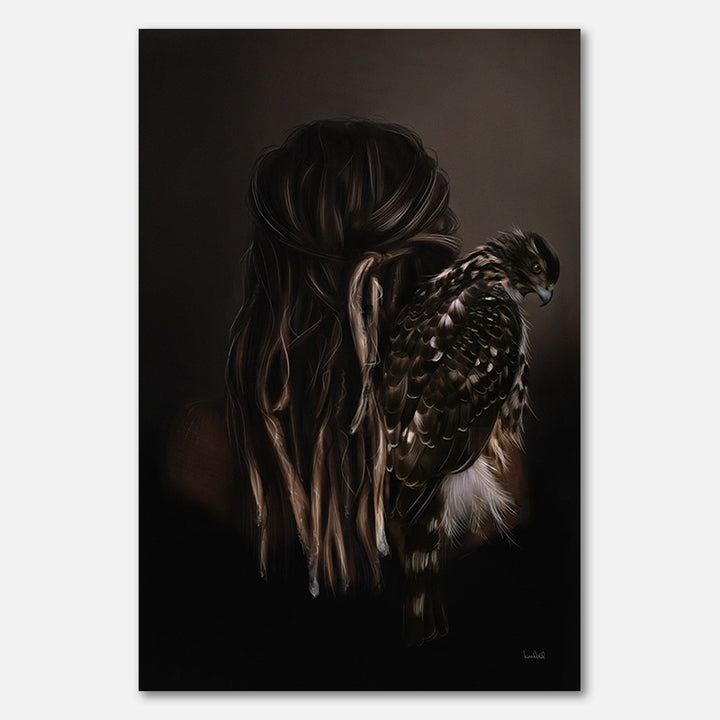 Mira met haar warrige haar en een havik op haar schouder. Een iets donkerdere print, maar die zeker zijn stempel zal drukken op de kamer. Hang haar naast haar "zusje" Rina, het is gewoon een perfecte combinatie!
