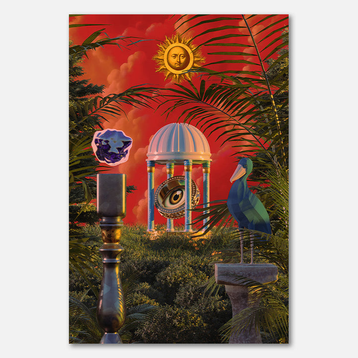 Deze schilderij brengt een dromerige, surrealistische sfeer tot leven, vol levendige kleuren, fantasierijke dieren en botanische elementen. Perfect voor liefhebbers van creatieve kunst en eigentijdse interieurs, voegt deze wanddecoratie een magisch accent toe aan elke ruimte en stimuleert het de verbeeldingskracht.