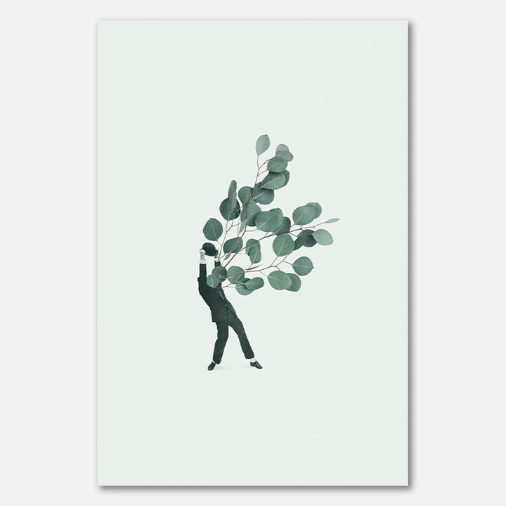 Deze wanddecoratie geeft elke ruimte een gedurfde, surrealistische twist met een mix van abstractie en botanische elementen. Het schilderij straalt creativiteit uit door de groene bladeren tegen een mintgroene achtergrond, perfect voor een modern, minimalistisch of mid-century interieur. Een echte eyecatcher die nieuwsgierigheid en frisheid toevoegt aan je muren.