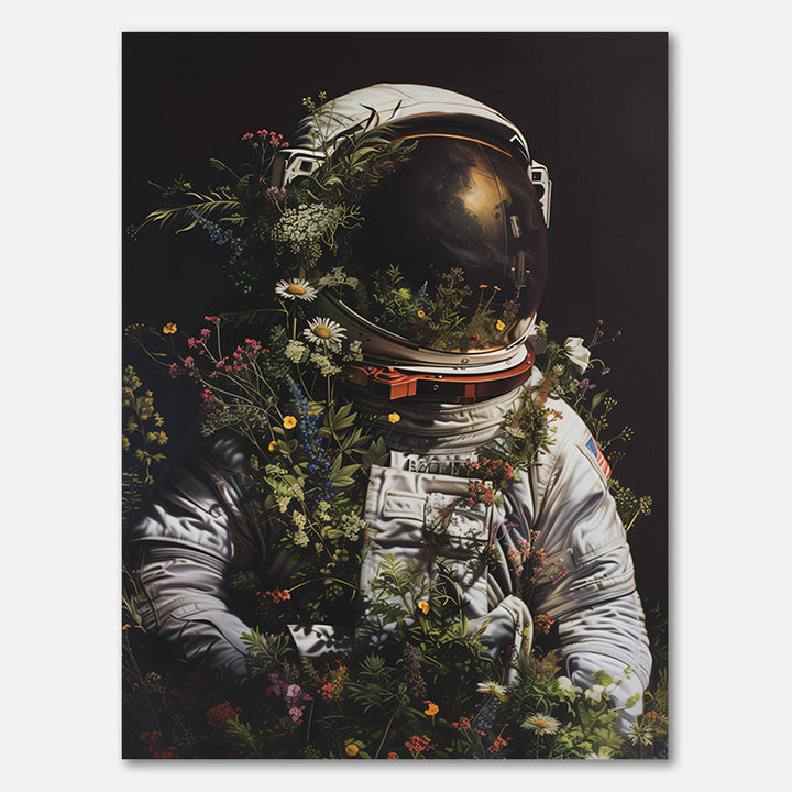 Dit schilderij brengt een magische mix van ruimtevaart en botanische schoonheid tot leven, waarbij een astronaut zweeft tussen surrealistische bloemen en planten. Perfect als wanddecoratie voor iedereen die houdt van creatieve, kosmische en natuur geïnspireerde thema’s, en prachtig passend in een modern, artistiek of minimalistisch interieur.