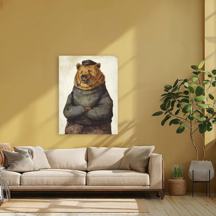 Deze wanddecoratie brengt direct karakter in huis met een berenportret dat een opvallende sweater en een stoere cap draagt. De combinatie van retro en sailor vibes maakt dit schilderij perfect voor liefhebbers van unieke, vintage illustraties en dierenportretten. Het past fantastisch in een eclectisch, Scandinavisch of speels interieur. Met deze kunst aan de muur geef je elk vertrek een vrolijke, eigenzinnige twist.