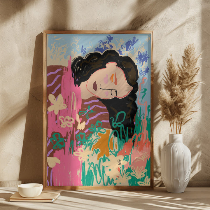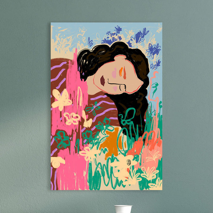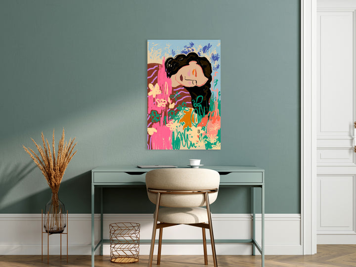 Dit levendige schilderij brengt een expressieve figuur tot leven, omringd door kleurrijke bloemen die direct sfeer toevoegen aan je ruimte. Perfect als trendy wanddecoratie voor een speelse woonkamer of een creatief kantoor, en ideaal te combineren met moderne en bohemien interieurs. Geef elke muur karakter en vrolijkheid met deze unieke eyecatcher.