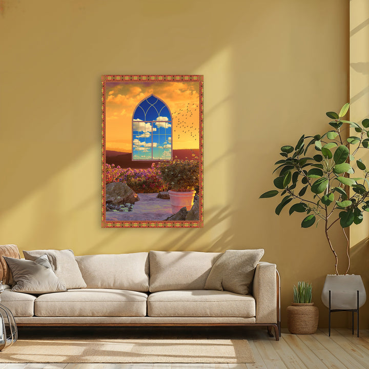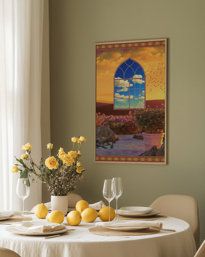 Deze kleurrijke wanddecoratie brengt een dromerige mix van fantasie, natuur en Afrikaanse sfeer in je interieur. Perfect in een retro of eclectisch ingerichte kamer, maakt het kunstwerk elke muur bijzonder met zijn betoverende avondlucht, botanische elementen en creatieve details. Ideaal voor iedereen die houdt van een uitgesproken, levendig accent.