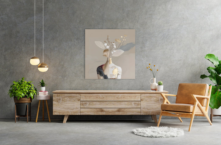 Deze wanddecoratie brengt een serene sfeer in huis met haar abstracte bloemen en subtiele neutralen tonen. Het schilderij straalt moderne elegantie uit en past perfect binnen een boho, minimalistisch of chic interieur. Geef jouw ruimte een stijlvolle en rustige uitstraling met deze unieke toevoeging aan je muur.